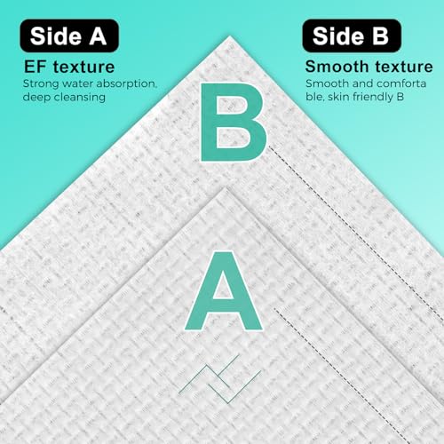 - EXTRA THICK & SOFT FACE TOWELS: The face towelettes disposable are 10" x 12", 50% thicker than other facial towels.Our face towels are double-sided, with a smooth surface on one side for gentle skin cleansing and a grid-textured surface on the other side for deep cleansing, effectively removing surface stains and allowing the skin to breathe freely