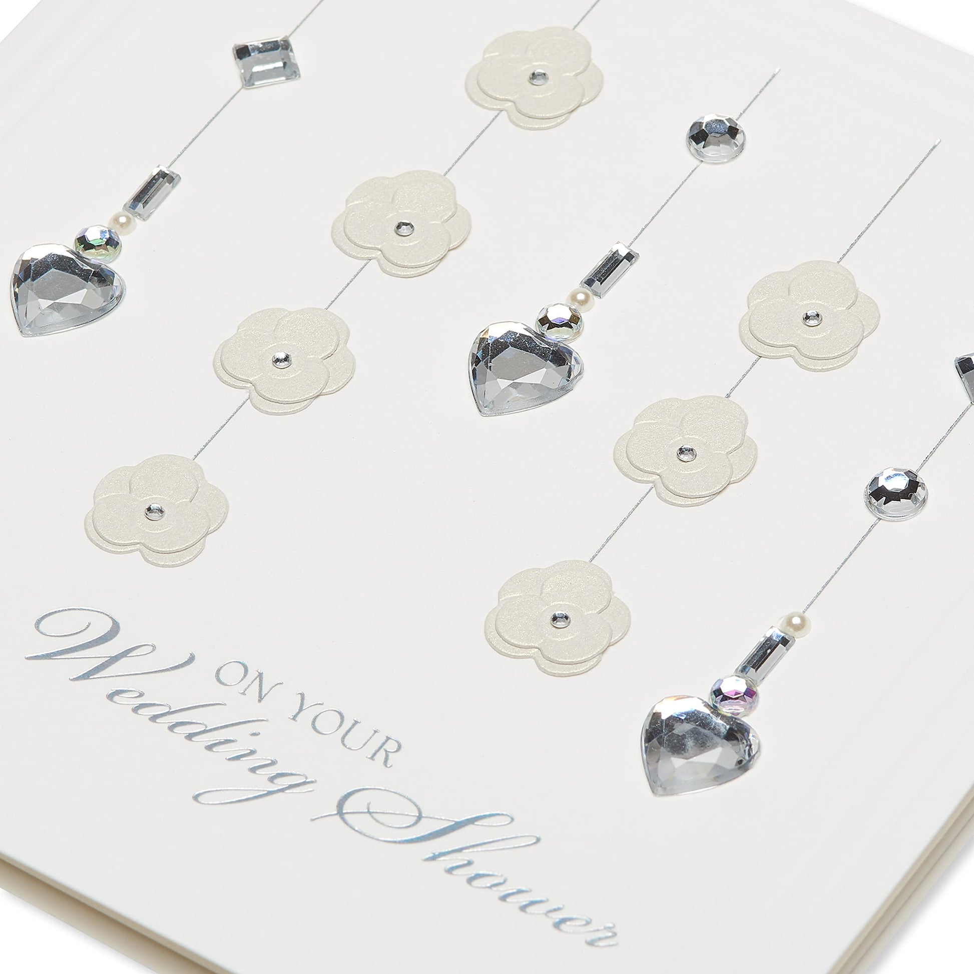 - This beautiful wedding shower card by Papyrus features premium details including gems and dimensional paper attachments, embossing and shimmering silver foil