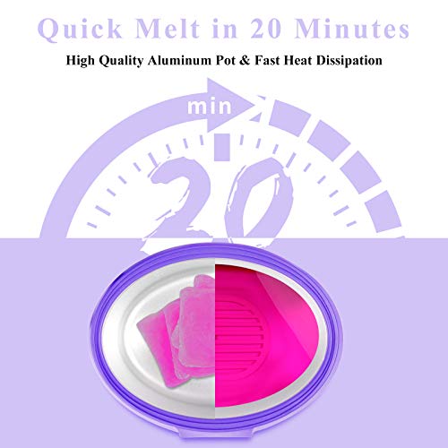 - Quick Heat in 20 mins & Large Capacity: Ejiubas Paraffin Wax Machine is constructed of aluminum inner pot and offers a suitable range of temperatures from 140 ¢µ to 170 ¢µwhich makes wax melt quickly and evenly; Take only 20 minutes to melt 2 lbs wax while others take as long as 2h. With the large opening(10.63*7.5*3.74 inch), you can easily to dip hand ,feet and elbow.