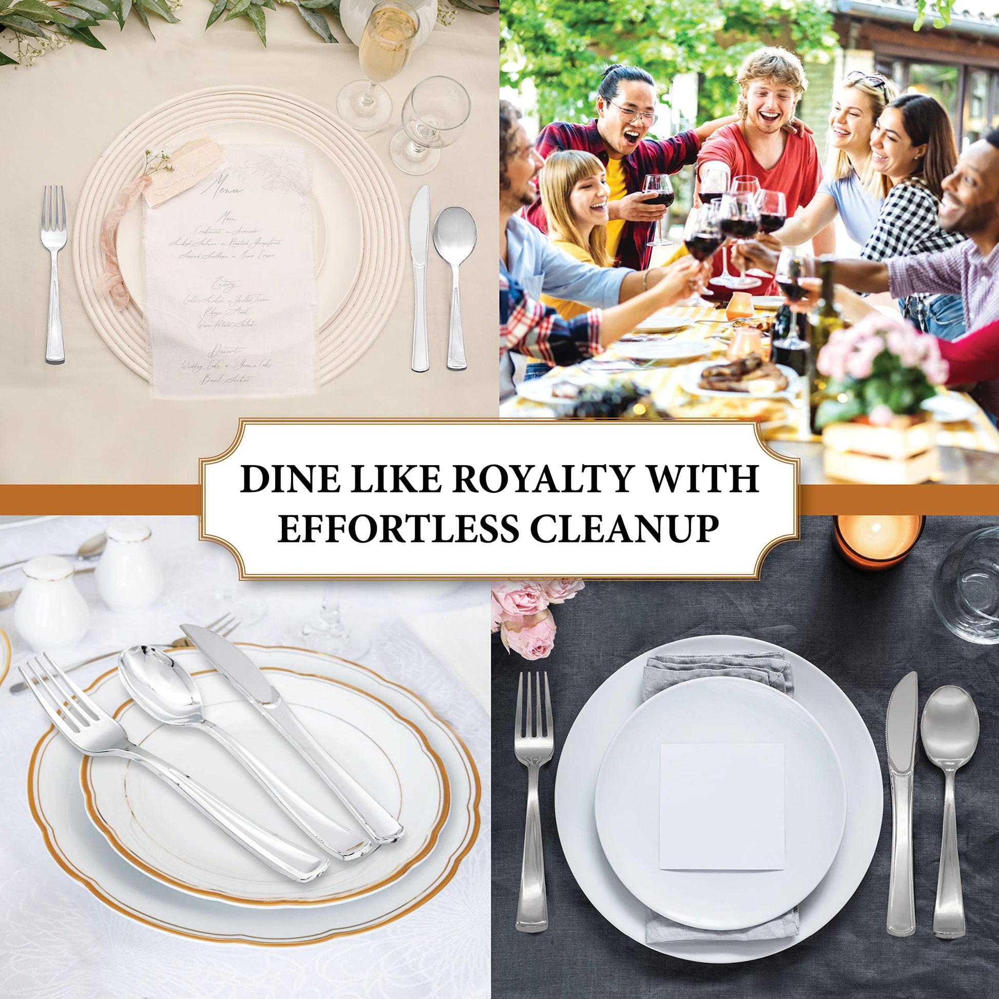 - Shimmering silver plastic cutlery looks great with both formal and informal place settings