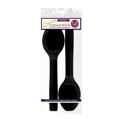 Party Essentials Hard Plastic 9" Serving Spoons, Black, 12 Count