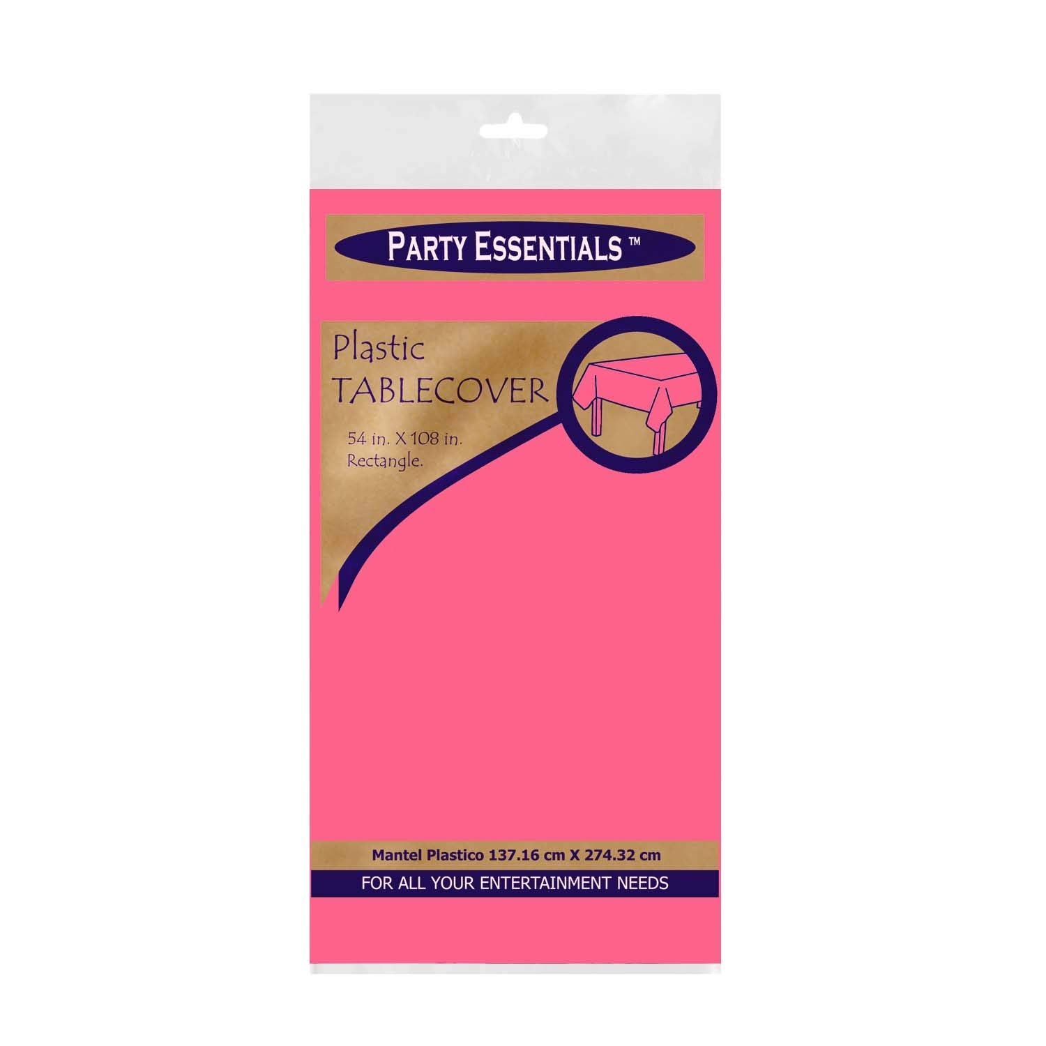 Party Essentials Heavy Duty Plastic Table Cover Available in 44 Colors, 54" x 108", Neon Pink