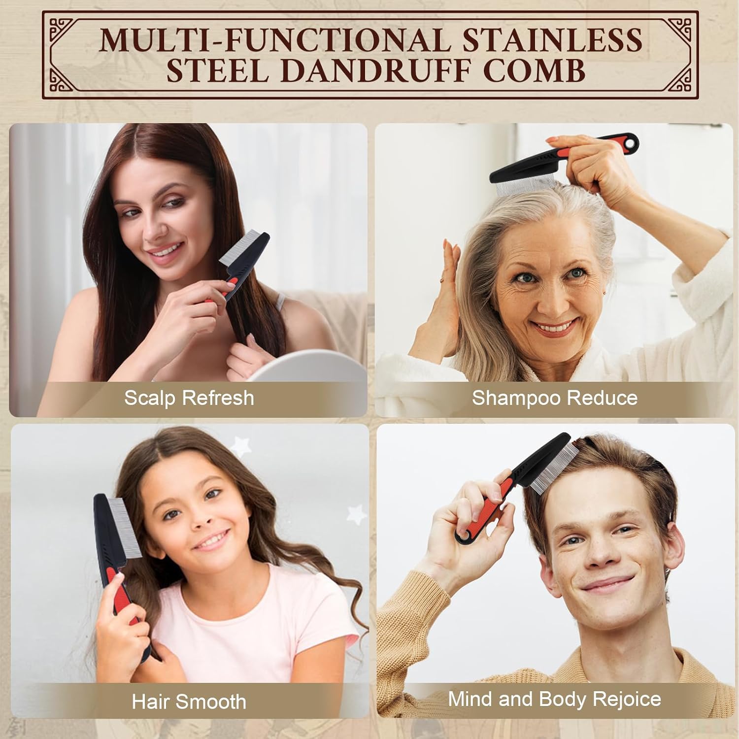 - 【ERGONOMIC HANDLE】The ergonomic handle ensures a comfortable grip, while the dandruff comb is easy to clean with a cotton swab or paper towel. Just rinse under water and dry with a soft cloth. Durable and perfect for daily use.