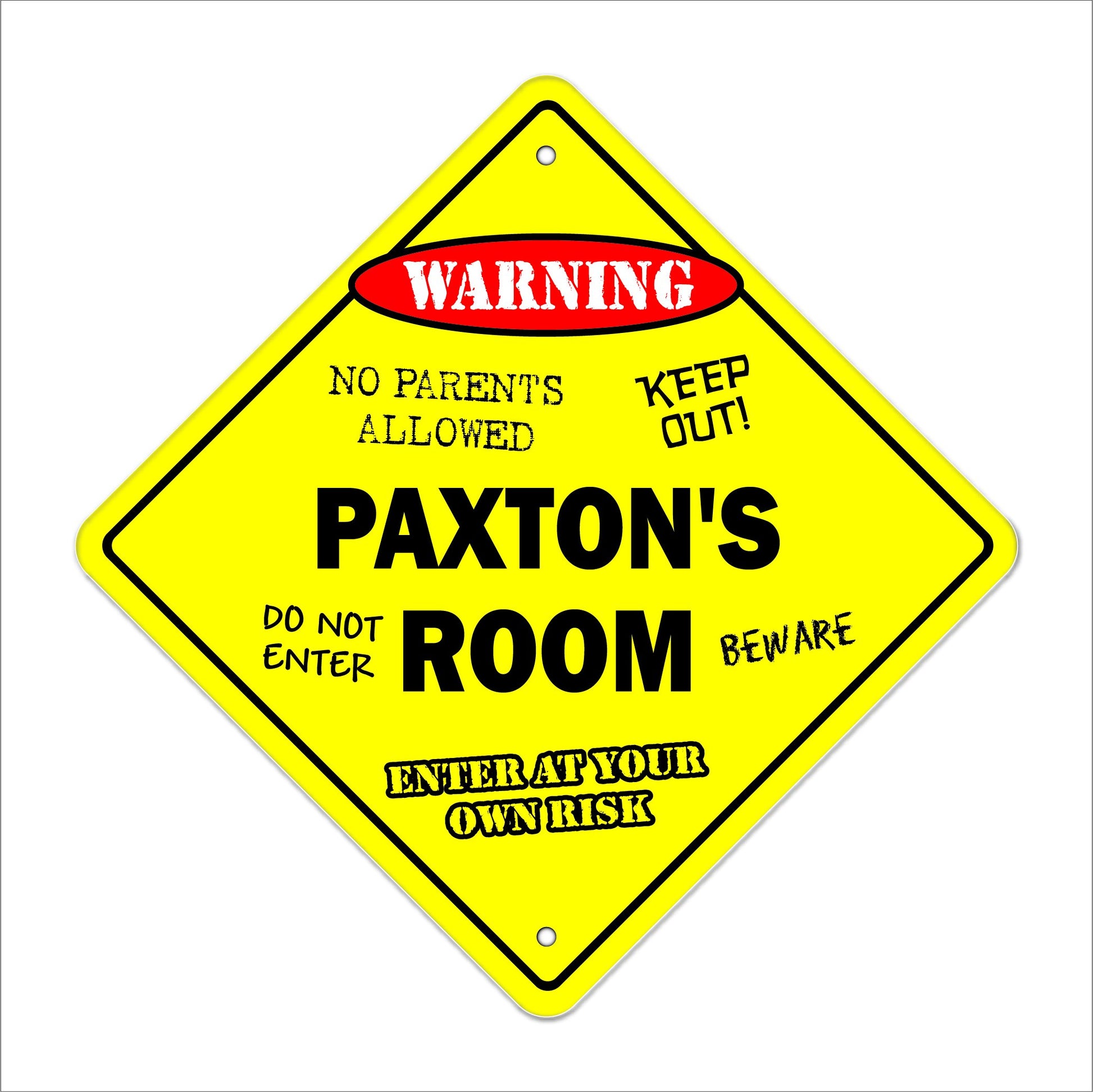 Details: Everybody loves personalized gifts and this is perfect for those kids in your life Made in the USA these signs are sturdy weatherproof plastic 12 tall and 12 wide diamond shaped with rounded corners and 2 cut mounting holes. Made To last Made from a special plastic designed to hold up to a beating, This sign can bend with out breaking and will never chip or crack, the colorful lettering will last a lifetime indoors and up to 4 years in the sun for outdoor use. Safe for A Childs Room Our signs have rounded edges and our made of a very strong but lightweight plastic so you can hang it in your child's room without the worry of it falling and hurting your child or cutting them with sharp edges. Product Details: Paxton's Room Sign Pre-Cut Mounting Holes Indoor and Outdoor Use Rust and Fade Resistant One-Sided Scratch Resistant treated Ink Dimension: 12 Tall x 12 Wide Made in the USA Outdoor Durable Plastic Click Add to Cart to get your Paxton's Room sign today and enjoy a good laugh each time you pass by!