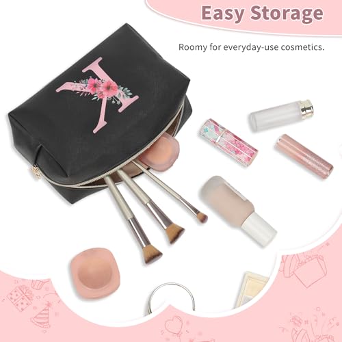 Personalized Initial Makeup Bag, Birthday Gifts for Women and Girls, Small Makeup Pouch Travel Toiletry Bag, Make Up Organizer Bag Gift Trendy Stuff for Friend Mom Teacher, Black