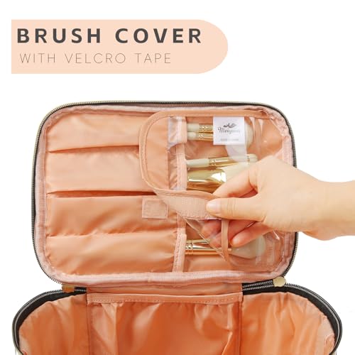 - ¡¼Smart Travel Organizer¡½9.8"x6.7"x5.1" spacious interior fits 18+ brushes, full-size setting sprays, palettes, and skincare bottles. Removable divider creates customizable compartments for makeup, haircare, nail polish, and toiletries. Top handle attaches easily to luggage.