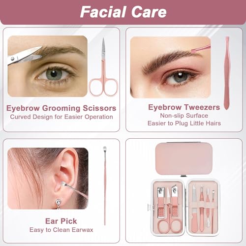 - ¡¼Multi-Purpose¡½Multi-functional beauty kit provides you with excellent manicure, pedicure, facial, ear care, all done in one set. Manicure tools can trim and sharpen nails and remove dead skin around nails. Eyebrow scissors and eyebrow tweezers can trim eyebrows and make them more beautiful.