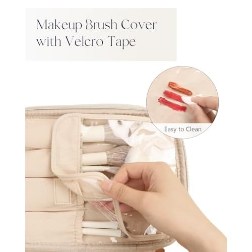 - ¡¼SEPARATE BRUSHES COMPARTMENT¡½Featuring 4 slots with a transparent makeup brush cover equipped with Velcro tape, the top flap accommodates over ten brushes of varying sizes, while the transparent PVC cover ensures effortless cleaning and dust resistance