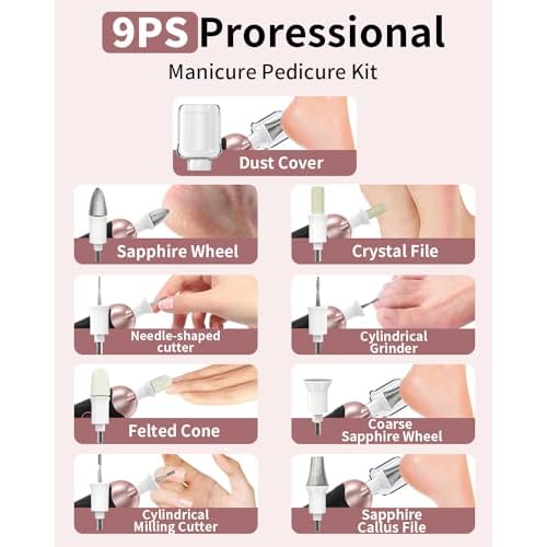 - Professional Manicure and Pedicure Set: This electric nail file is design for hand and foot care, can be used for all-around shaping, buffing, grinding, polishing, cuticle, hard skin, callus removing. perfect manicure kit for women trimming, grinding and polishing natural nails and toe nail grinder kit for thick nails. You will enjoy this manicure pedicure tool kits !!!