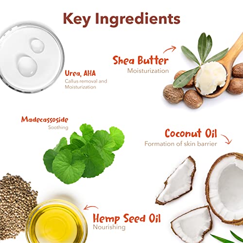 - Vegan Formula & Not Tested On Animals: It's perfect for your sensitive skin and it's made for all skin types - Madecassoside and shea butter naturally peel away heel calluses - Coconut oil and hemp seed oil moisturize and soften dry skin to be like a baby¡¯s foot
