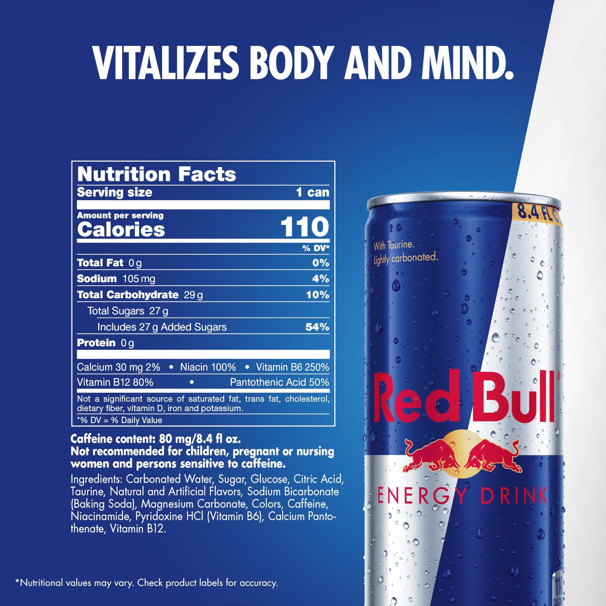 Red Bull Energy Drink with 80mg Caffeine plus Taurine & B Vitamins, 8.4 Fl Oz, Pack of 4 Cans