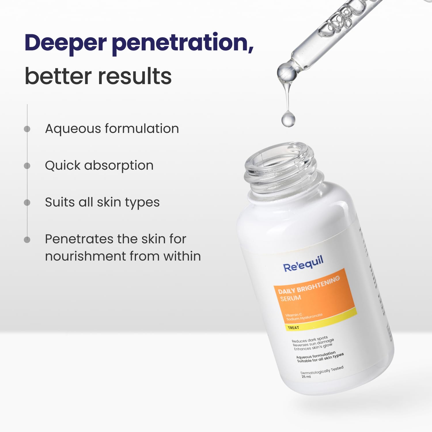 Re'equil Daily Brightening Serum | 10% Vitamin C Serum | Reduces Dark Spots | Reverses Sun Damage | Enhances Skin’s Glow | For All Skin Types | 25 ml