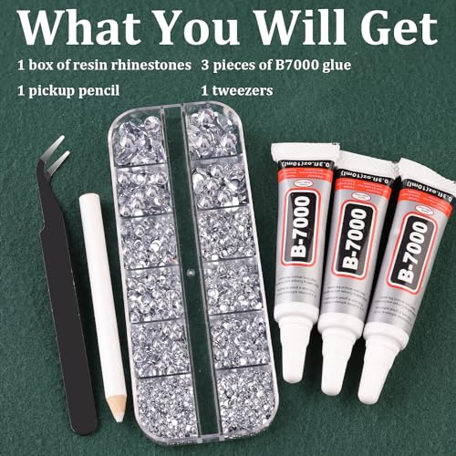 Resin Rhinestones for Crafting with B7000 Jewelry Glue, 1 Box Clear Flatback Crystals with 3Pcs 10ml Glue for Bedazzling Crafts DIY Nail Art Makeup£¬Non Hotfix Gems for Clothing Shoes