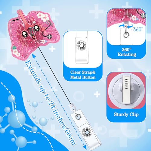 - Retractable Badge Reel: Designed with sparkling material and funny look,making this badge reel be unique; The retractable badge reel allows respiratory therapists to conveniently display their ID cards without removing them from their clothing; The retractable nylon cord extends up to 24 inches;The secure clip on the back ensures the reel stays firmly attached to uniforms, scrubs, or clothing; Its practical design makes it a must-have for Respiratory Therapists