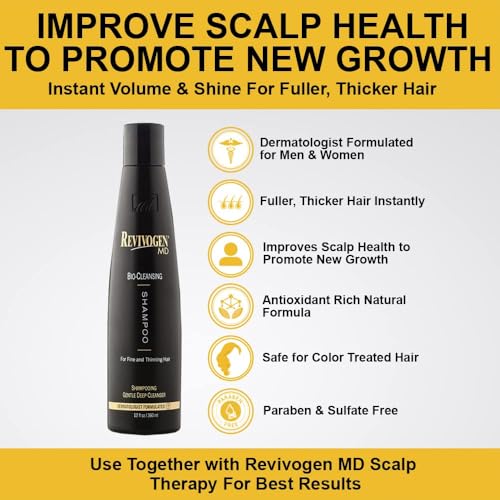 - CONVENIENT SIZE: Each unit of Revivogen MD Bio-Cleansing Shampoo comes in a generous 12 oz. bottle and was created for daily use. A gentle cleaner that is easy to incorporate into your daily hair care routine, making it a convenient choice for those seeking thinning and balding hair loss solutions. Created for daily use.