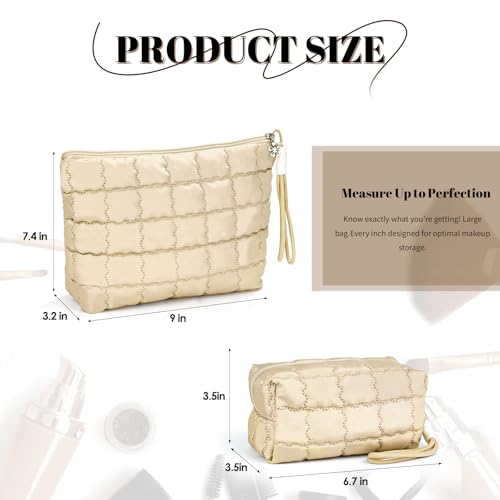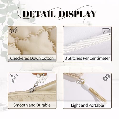 Richeart Makeup Bag Travel Toiletry Bag - Checkered Down Cotton Makeup Pouch for Women with Cosmetic and Pencil, Aesthetic Khaki Design, 2 Pieces