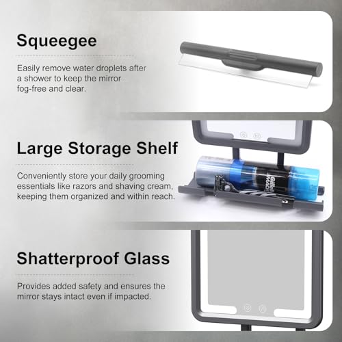 - ¡¼3-Color Adjustable Lighting¡½This lighted shower mirror features 3 color modes?warm, natural, and cool?along with adjustable brightness to suit all your grooming and skincare needs. Perfect for precise shaving, facial care, or as an illuminated bathroom mirror.