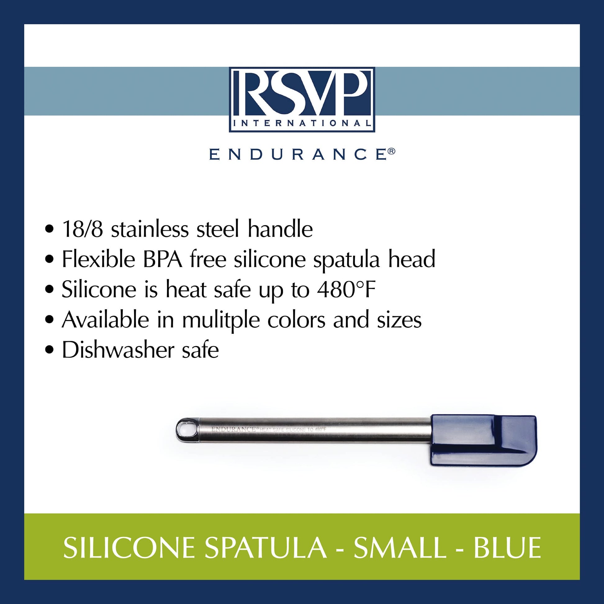 RSVP International Endurance Kitchen Tool Collection Silicone Spatula, Stainless Steel Handle, 9.5x1.4", Blue