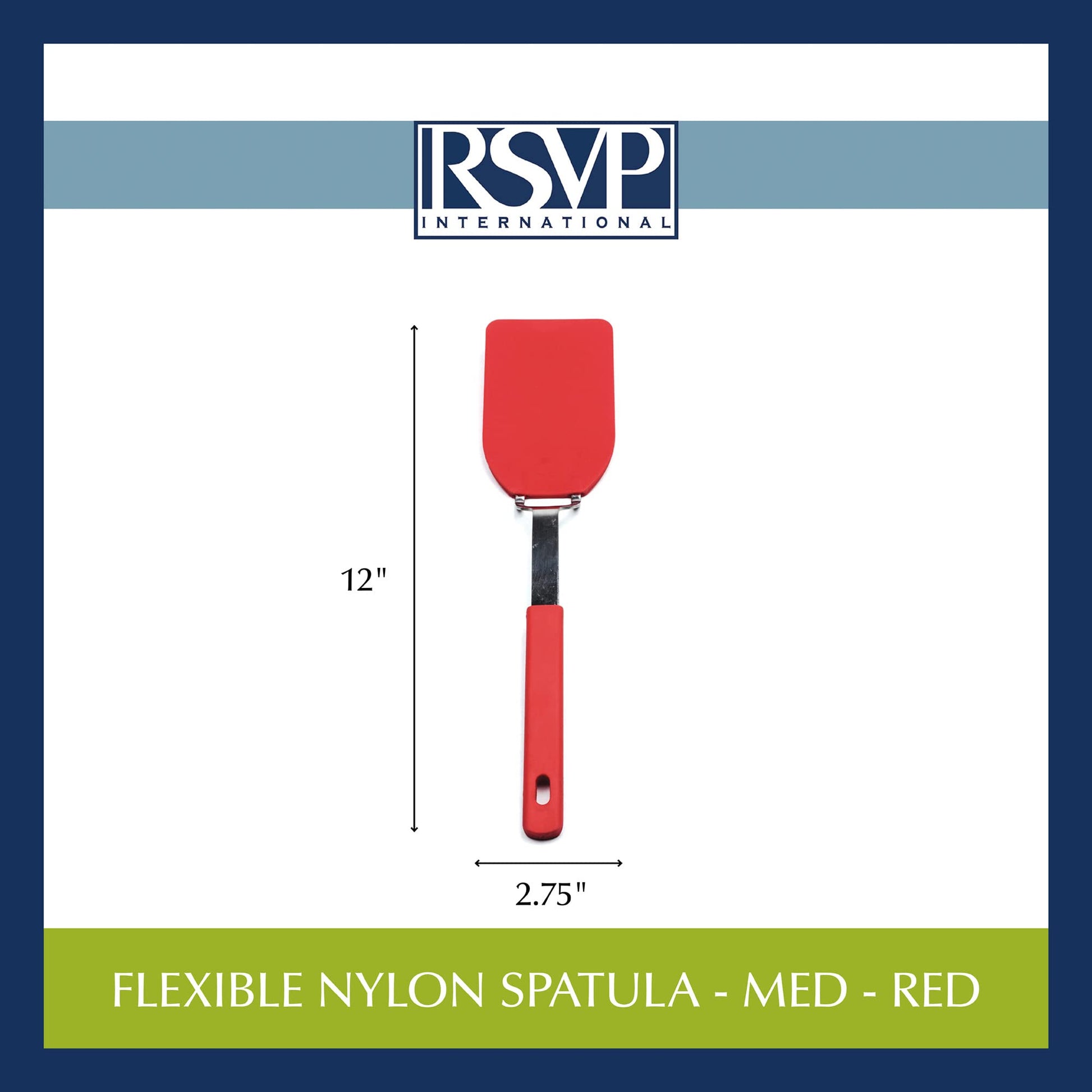 RSVP International Kitchen Tool Collection Flexible Nylon Spatula, Stainless Steel Handle, 12x2.75", Red
