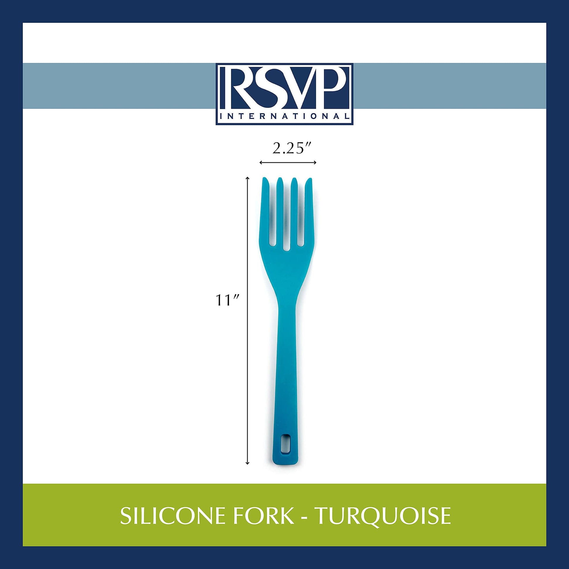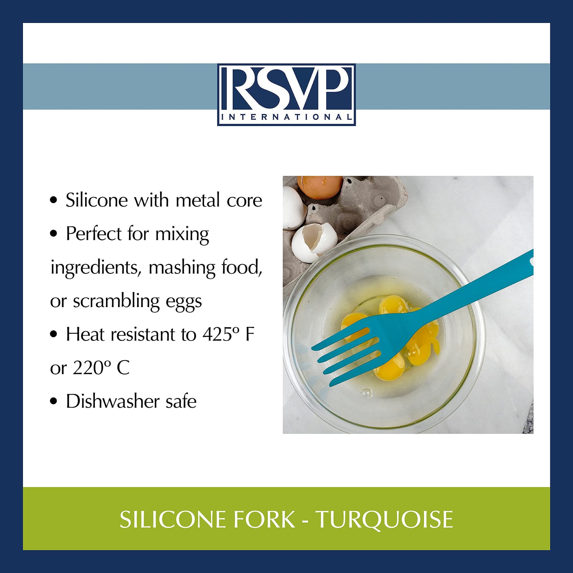RSVP International Silicone Flexible Fork, Turquoise, 11" | Mixes Ingredients, Mashes Food, Whisks Eggs, & More | Dishwasher Safe & Heat Resistant | Baking, Serving, Mixing Made Easy