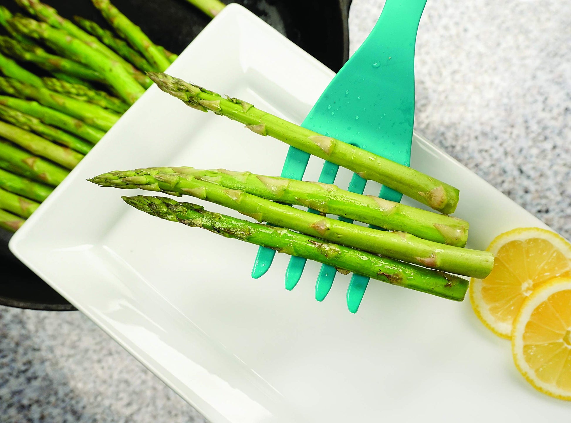 Details: RSVP strives to offer quality kitchen products and cooking tools at competitive prices. Our Silicone Flexible Fork in Turquoise is a perfect example. Great for mixing ingredients, mashing food, or scrambling eggs right in the pan. The large size also makes it ideal for turning meats or serving vegetables. Measures 11-inches in length. Heat safe up to 425 degrees Fahrenheit or 220 degrees Celsius. Dishwasher safe. When all the right people, and ingredients, kitchen tools, and food come together, we call this The Art of Gathering.