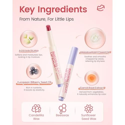 - ¡¼Non-toxic & Safe for 3+¡½This natural color lip balm for kids is free from mineral oil, sulfates, hormones, alcohol, and preservatives. Passes rigorous oral toxicity and multiple skin irritation tests to ensure sensitive lips are not irritated.
