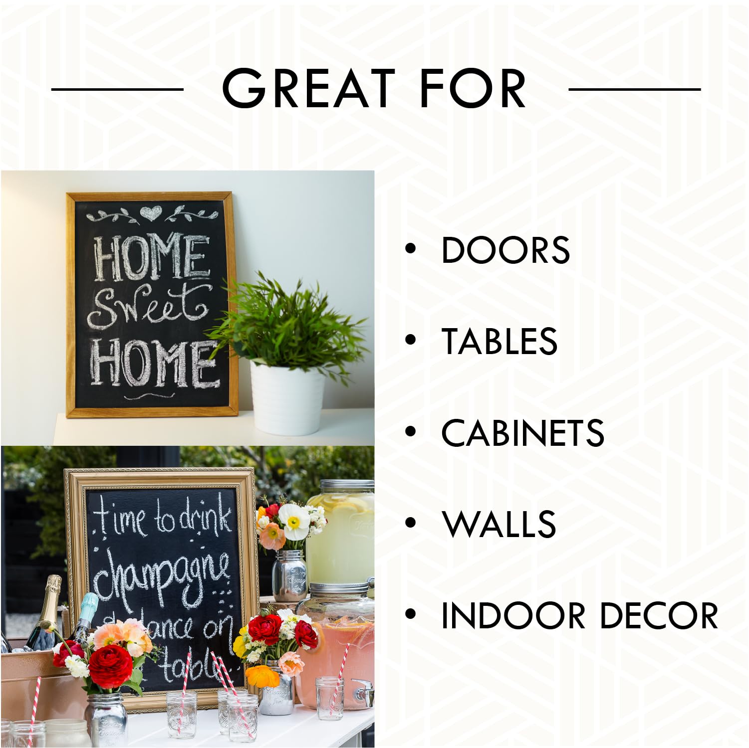 - Ideal for creating a custom interior chalkboard on multiple surfaces including wood, metal, masonry, drywall, plaster, glass, concrete, paperboard and hardboard