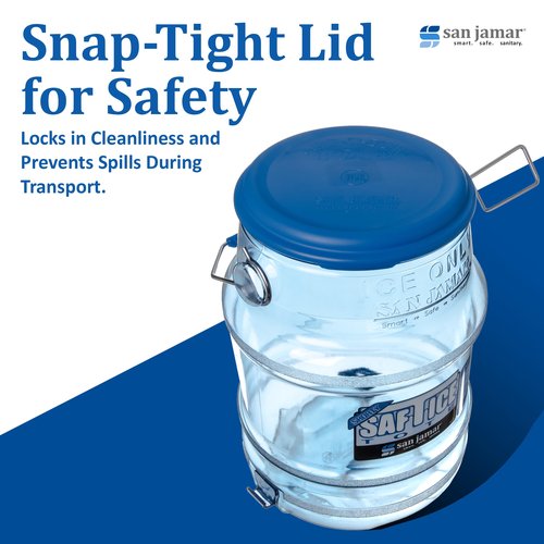 - Snap-Tight Lid – Protects ice from airborne contaminants and prevents accidental spillage during transport of San Jamar Saf-T-Ice 5 and 6-gallon ice totes