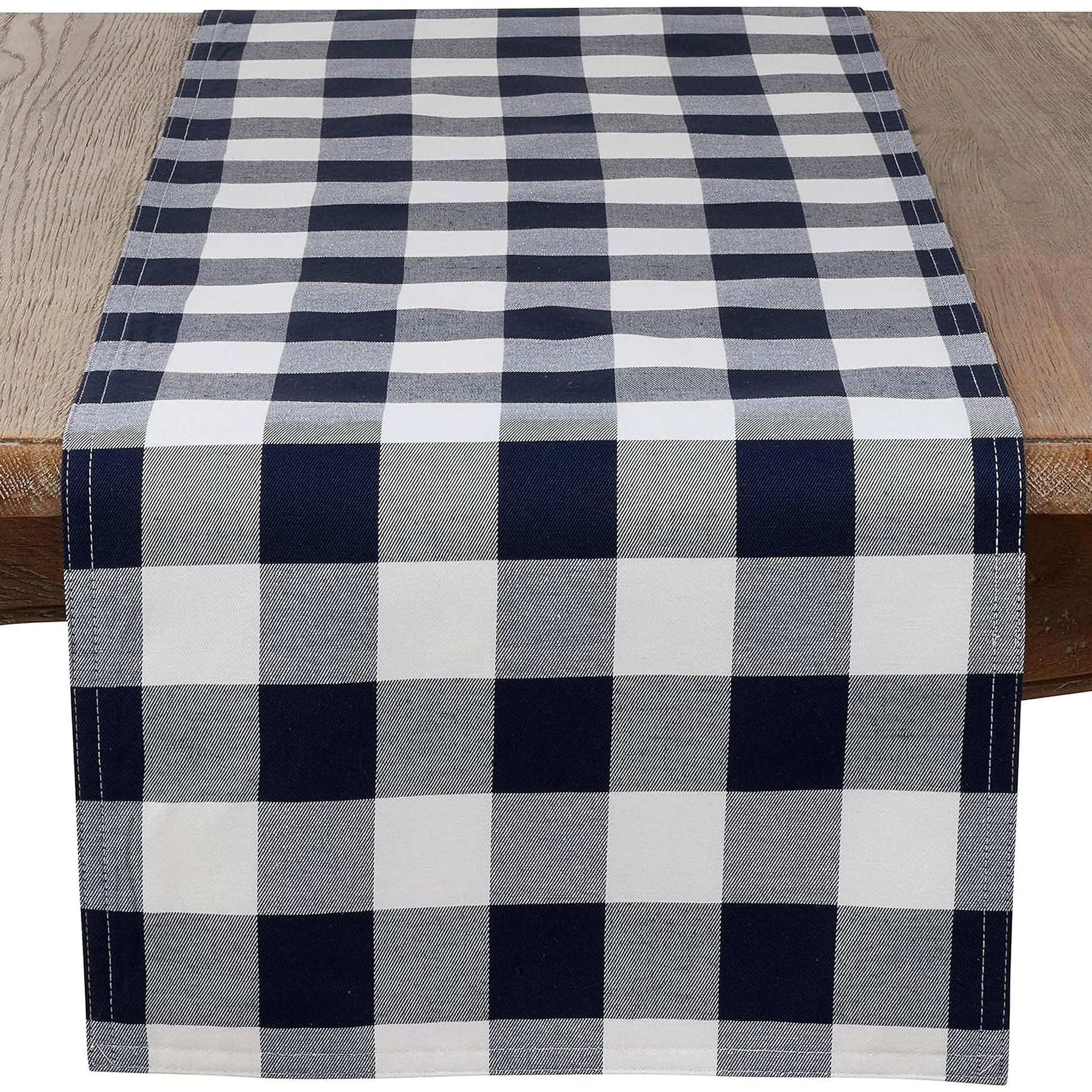 SARO LIFESTYLE Nautica Collection Cotton And Poly Blend Buffalo Plaid Runner, 16" x 72", Navy Blue