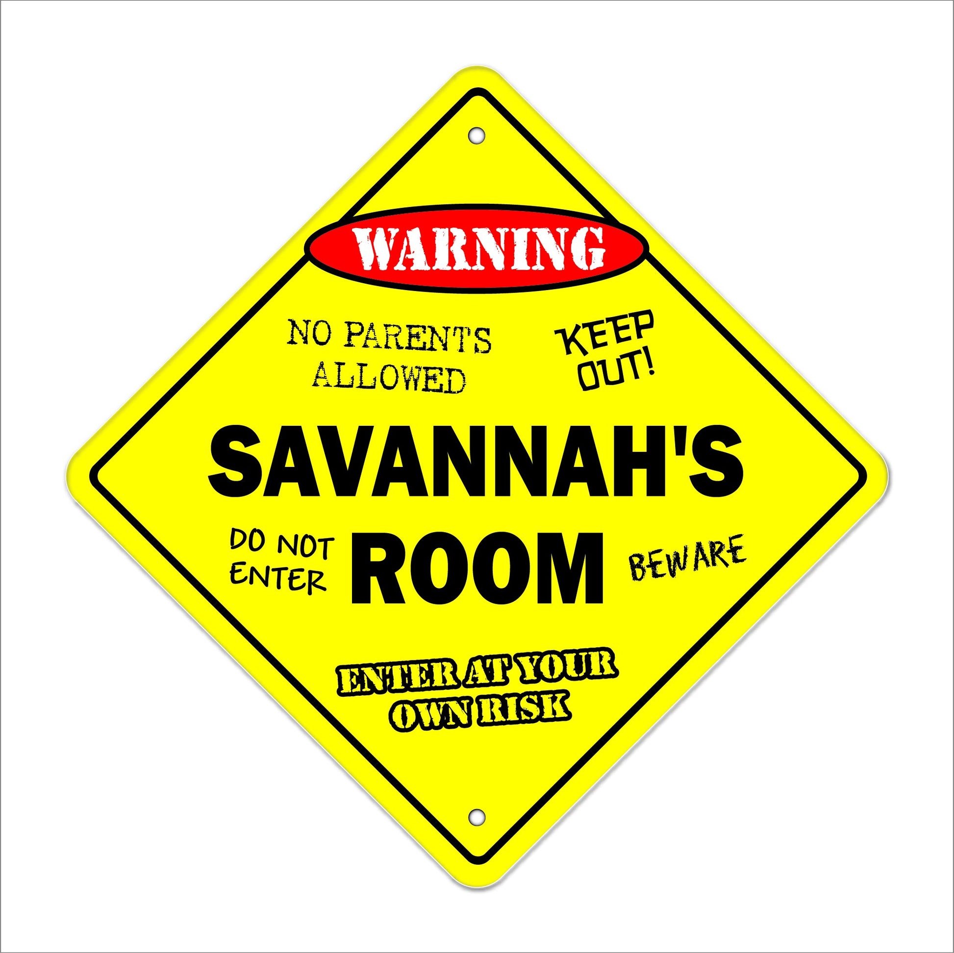 Details: Everybody loves personalized gifts and this is perfect for those kids in your life Made in the USA these signs are sturdy weatherproof plastic 12“ tall and 12“ wide diamond shaped with rounded corners and 2 cut mounting holes. Made To last Made from a special plastic designed to hold up to a beating, This sign can bend with out breaking and will never chip or crack, the colorful lettering will last a lifetime indoors and up to 4 years in the sun for outdoor use. Safe for A Childs Room Our signs have rounded edges and our made of a very strong but lightweight plastic so you can hang it in your child's room without the worry of it falling and hurting your child or cutting them with sharp edges. Product Details: Savannah's Room Signore-Cut Mounting Holes Indoor and Outdoor Use Rust and Fade Resistant One-Sided Scratch Resistant treated Ink Dimension: 12 Tall x 12 Wide Made in the Durable Plastic Click &liquor; Add to Cart to get your Savannah's Room sign today and enjoy a good laugh each time you pass by!