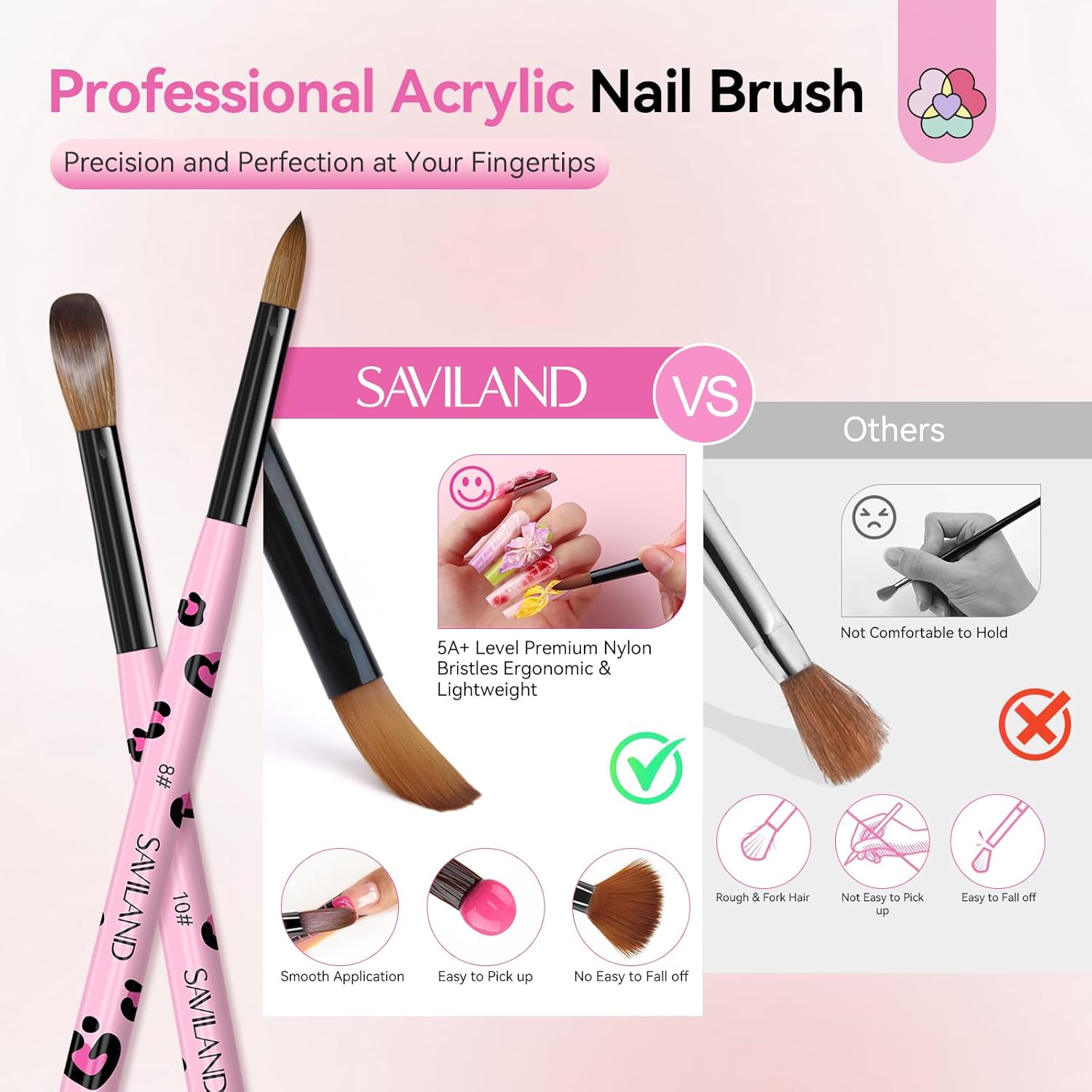 - SAVILAND BRUSH SERVICE: All of our products are under strict quality control and will be double-checked before delivering. If you have any problems with this acrylic nail brush set, please reach out to customer service. We will solve the problem for you at the first time. Happy shopping