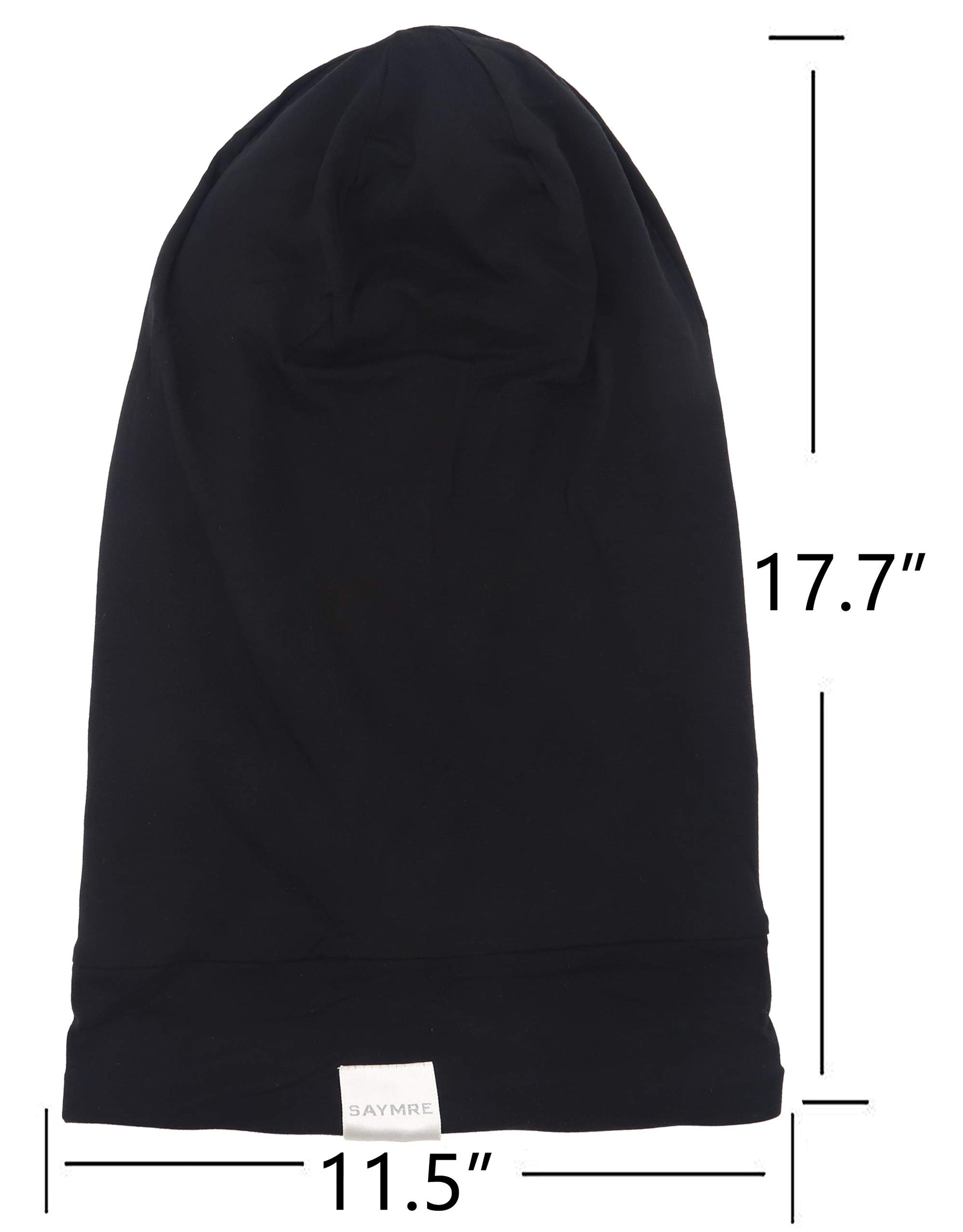 SAYMRE Large Satin Lined Bonnet Silky Hair Wrap Sleep Cap - Adjustable Beanie Slouchy Hats Bonnets for Women Long,Curly Hair (XX-Large, Black)