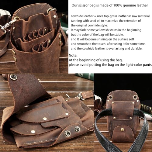 - ¡¼Premium Material¡½This professional hairdressing scissor bag is Made of 100% top cowhide leather, which provides hard-wearing and easy-to-clean. Vintage style gives your life to be individual.