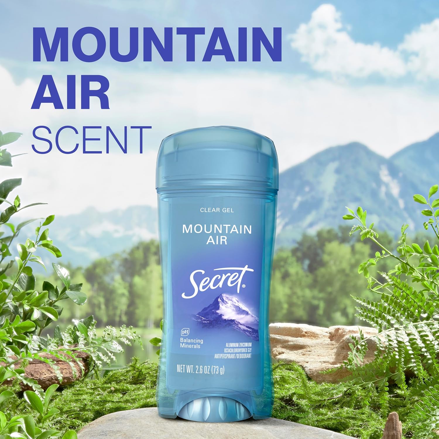 Secret Fresh Antiperspirant Deodorant for Women, 72hr Breathable Sweat & Odor Protection, Instant Freshness & Gentle, PH Balancing Minerals, Clear Gel, Mountain Air Scent, 2.6 oz