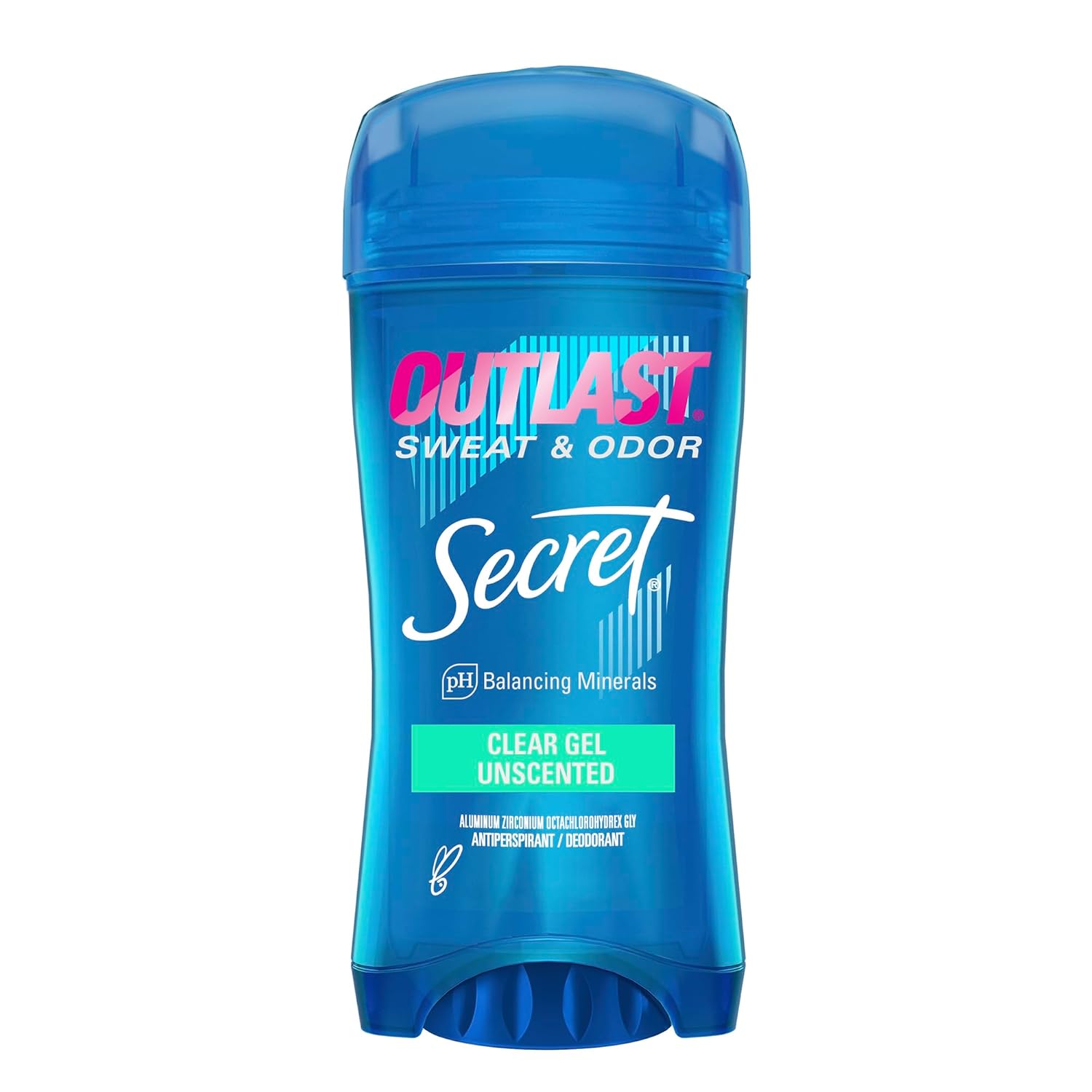 Secret Outlast Antiperspirant Deodorant for Women, 72hr Sweat & Odor Protection, PH Balancing Minerals, Clear Gel, Unscented, 2.6 oz