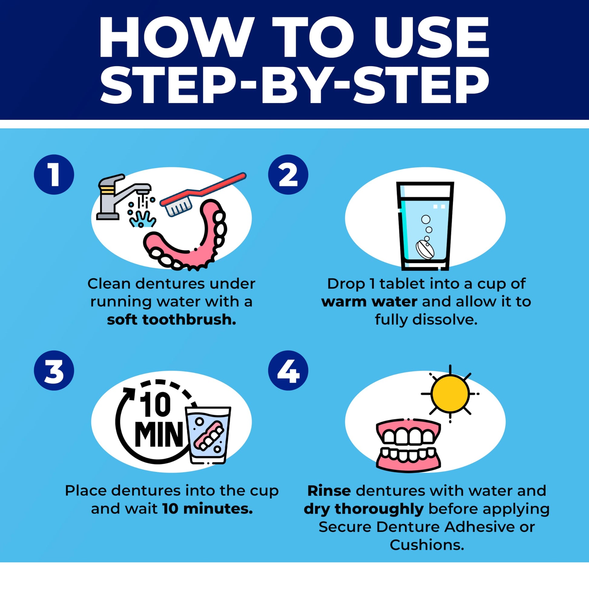 - VERSATILE & FSA/HSA ELIGIBLE – These individually wrapped tablets aren’t just for dentures! They effectively clean retainers, Invisalign aligners, mouth guards, night guards, and removable braces. Plus, Secure Cleansing Tablets are FSA/HSA eligible, making it easier to maintain your dental hygiene with your pre-tax benefits.