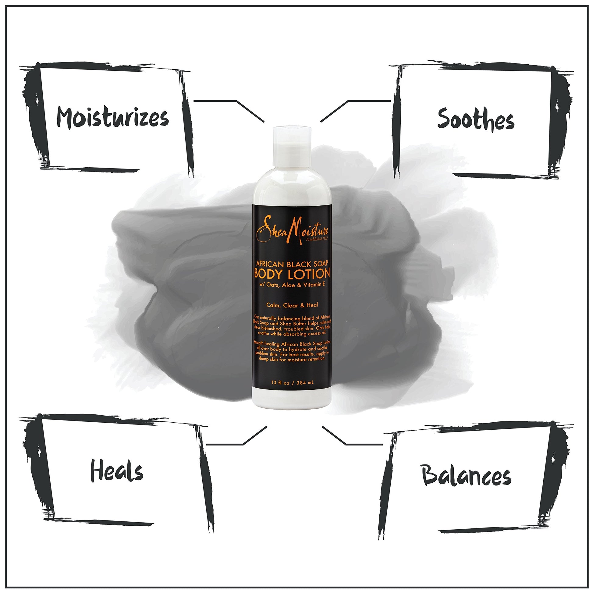 - SheaMoisture African Black Soap Soothing Body Lotion is a skin moisturizer and lotion that soothes dry skin