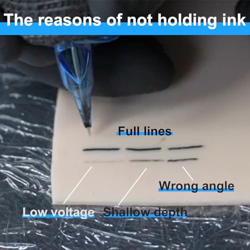 - About Holding Ink - If the line on silicone tattoo fake skin is not full, please check if the tattoo machine working voltage is high enough, if the needles depth is appropriate and if the shader needles's angle is right.
