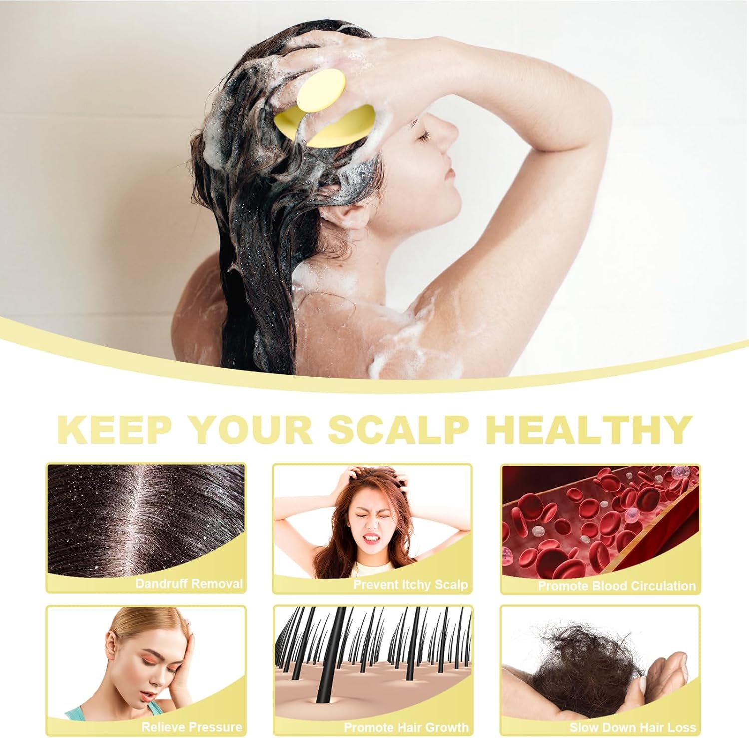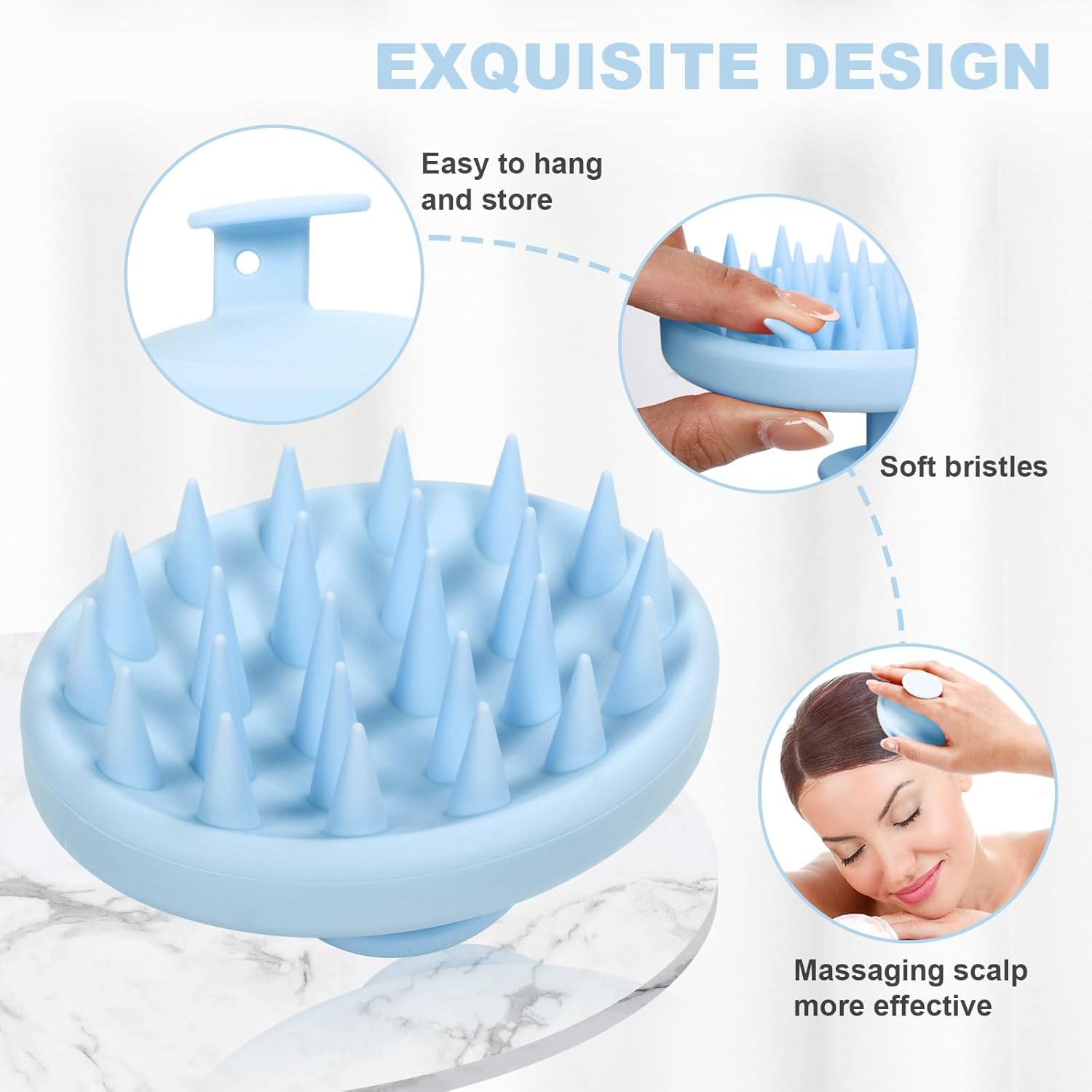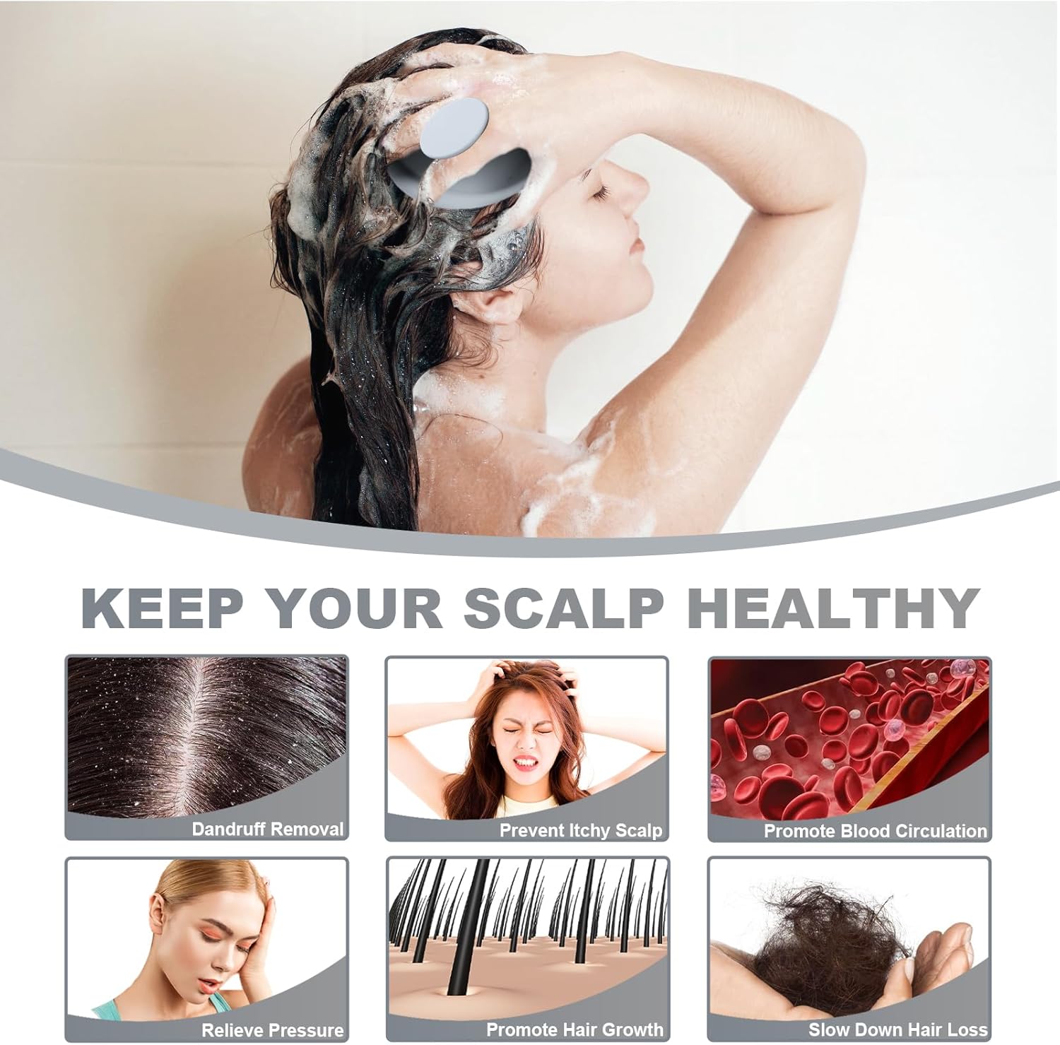 - 3.Dandruff Removal and Exfoliation: As a dandruff removal shampoo brush, it effectively eliminates scalp flakes and assists in exfoliating the scalp by cleaning the pores and rejuvenating the skin.