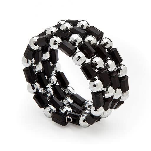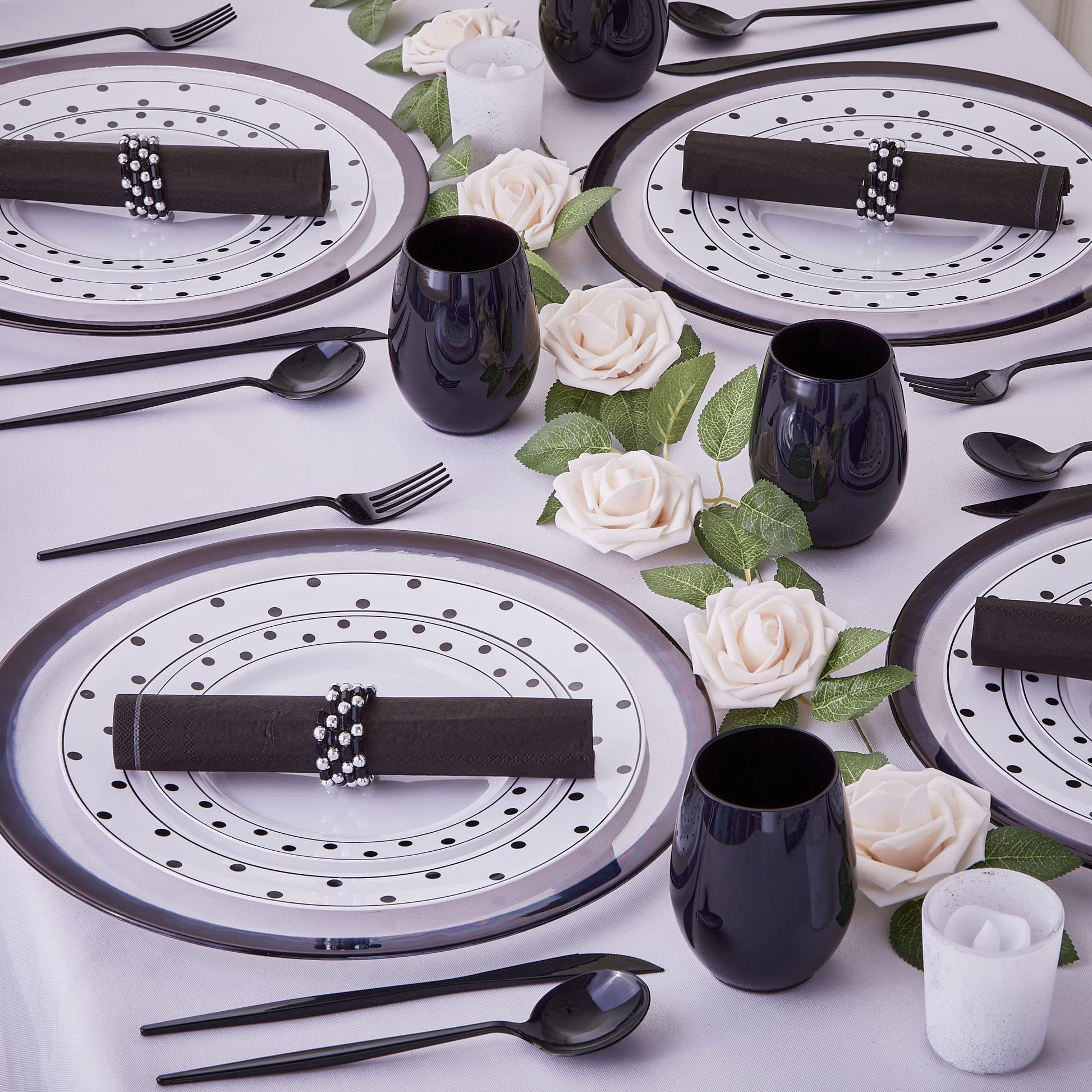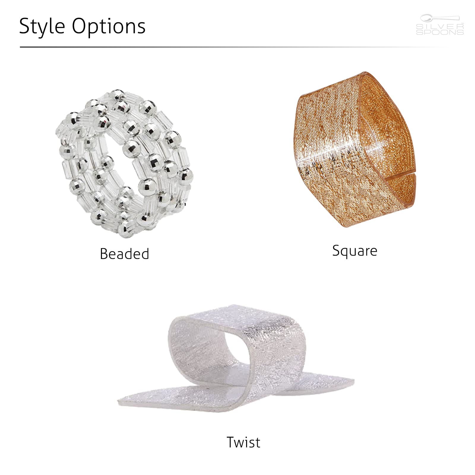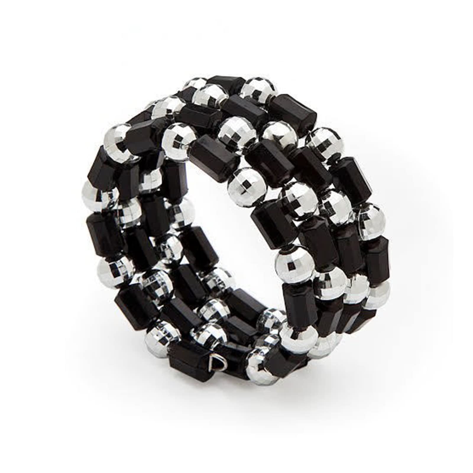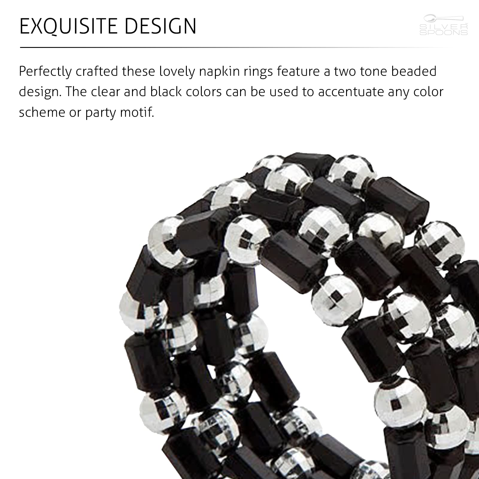 Silver Spoons Elegant Beaded Napkin Rings Set of 6, Napkin Holders for Tablesetting, Great for Parties, Weddings, Engagements, Baby Showers, Holiday, Christmas, Upscale Events, Dinners & Celebrations - Black/Silver