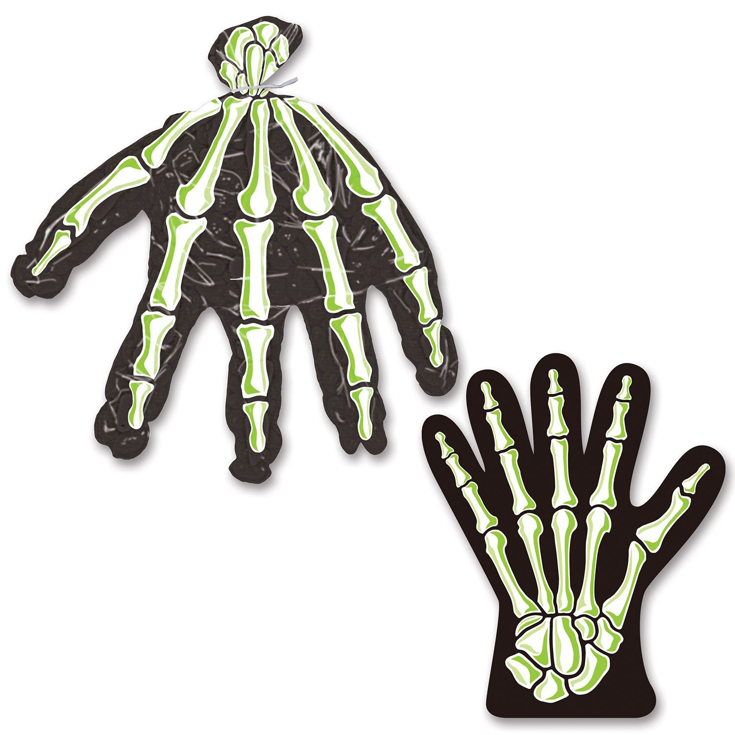Details: Beistle 00601 Skeleton Hand Treat Bags. Send your guests home with this novelty treat bag shaped like a skeleton hand. Package contains 10 bags and 10 twist ties.