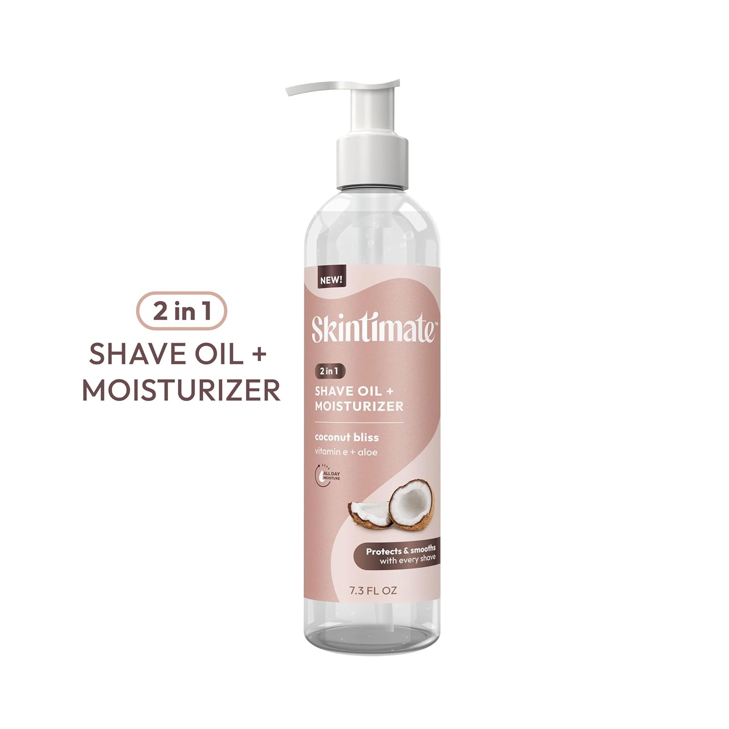 Skintimate 2-in-1 Shave Oil & Moisturizer, Coconut Bliss, 7.3oz | Shaving Oil, After Shave for Women Bikini Area Moisturizer with Vitamin E and Aloe, Shaving Cream Alternative, 7.3 fl oz