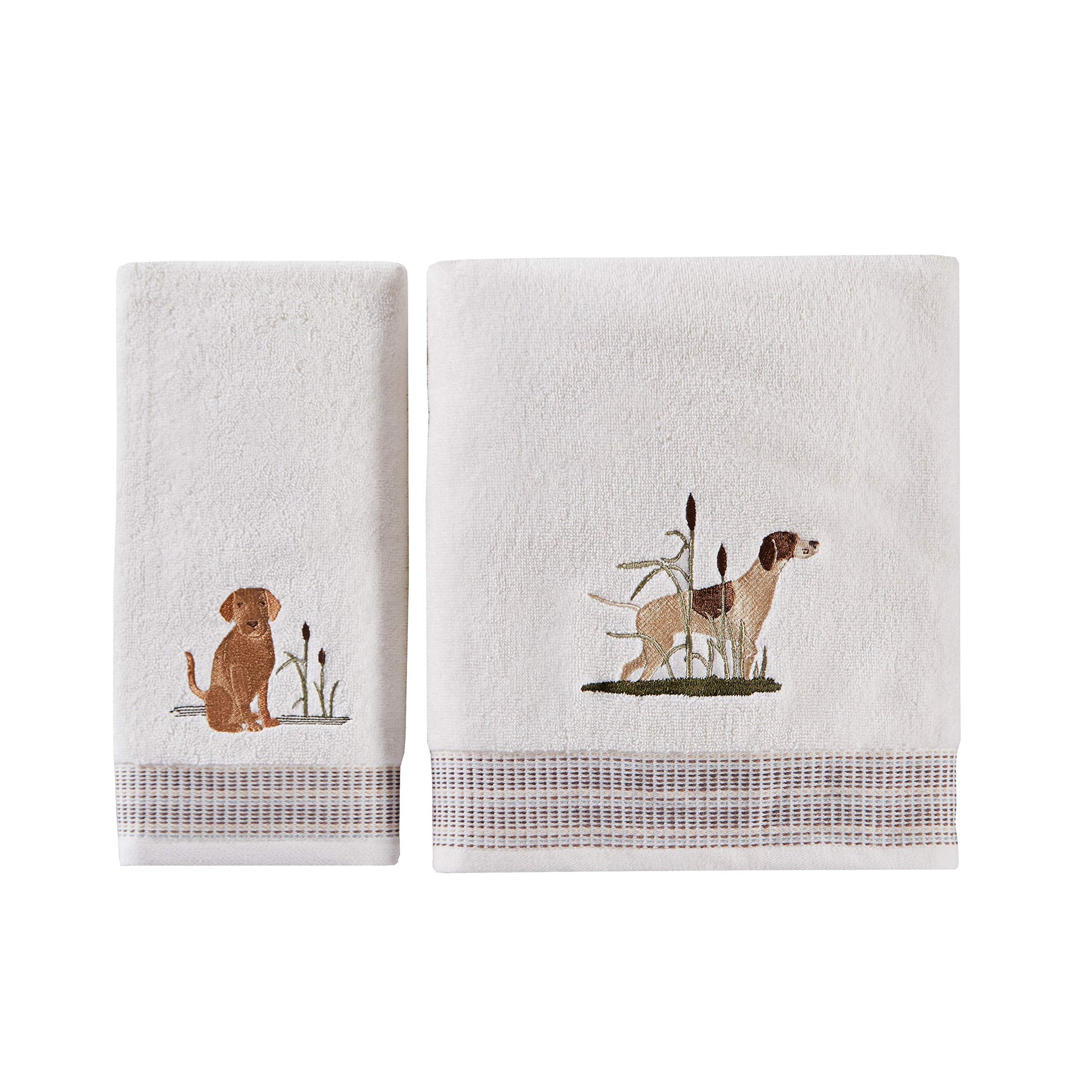 Details: Celebrate the dog and outdoor life with the Adirondack Dogs bath towel. A noble hound stands at attention in the cattails looking for the quarry. A multicolored woven end hem adds dimension to the towel. Coordinate the towel with the rest of the Adirondack Dogs bath ensemble.