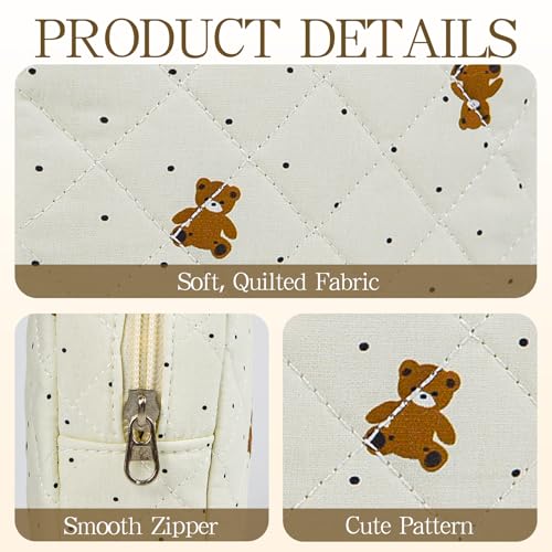 Small Floral Quilted Makeup Bag, Coquette Aesthetic Travel Toiletry Organizer for Women, Lightweight Cotton Cosmetic Pouch