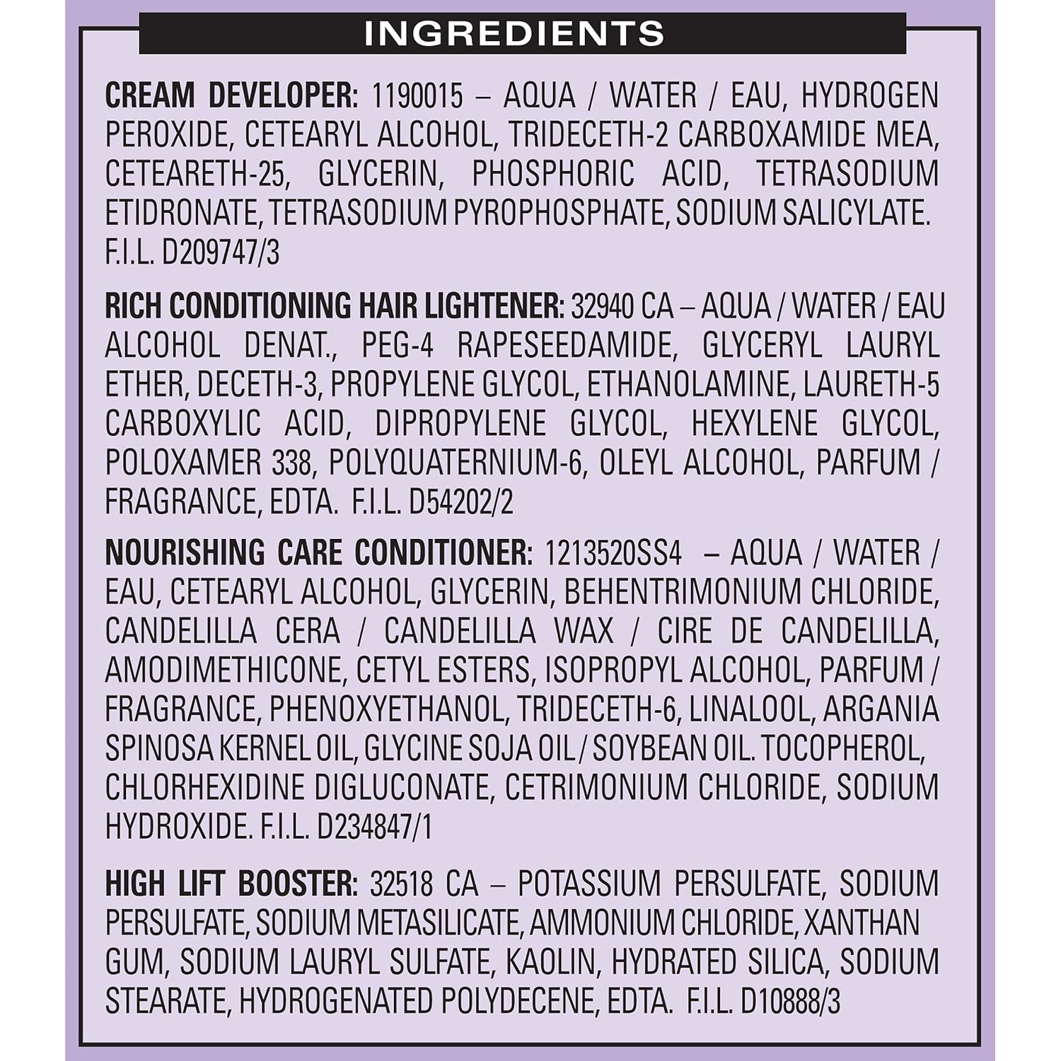 - Hair bleach kit with patented, ammonia-free hair bleach powder and cream developer with encapsulated oils