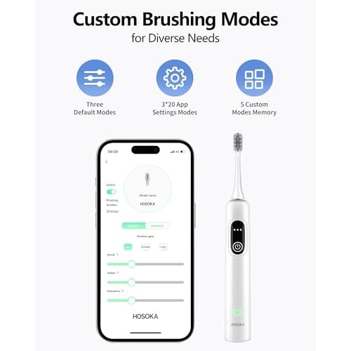 - Advanced 60¡Æ Sonic Cleaning: The HOSOKA electric toothbrush combines ultra-wide 60¡Æ oscillations with high-frequency vibrations up to 66,000 times per minute. Inspired by the dentist-recommended Bass technique, it delivers superior oral hygiene.
