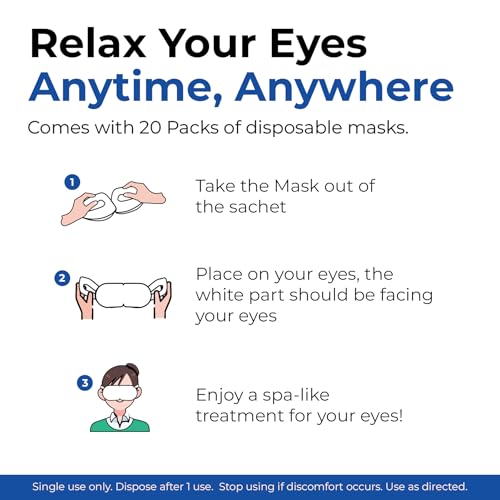 Steam Eye Mask for Dry Eyes | Self Heating Warm Compress for Eyes | Disposable Heated Eye Mask for Sleep, Spa, Travel Essentials & Relaxation Gifts for Women & Men (Unscented, 20 Pack)