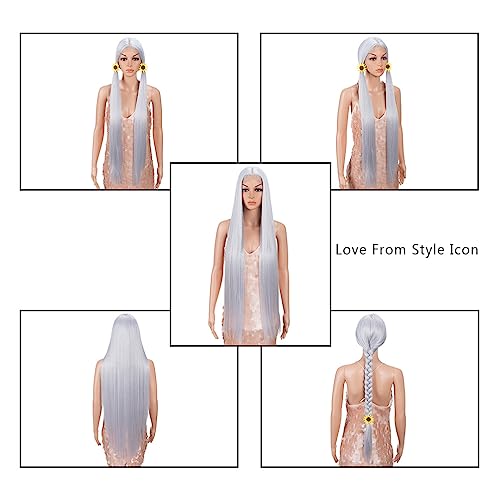 Style Icon 38" Silver Grey Wig Super Long Straight Wigs 6" Deeper Middle Part Lace Lace Front Wigs Silver Grey Long Straight Wig (38", THISTLE)