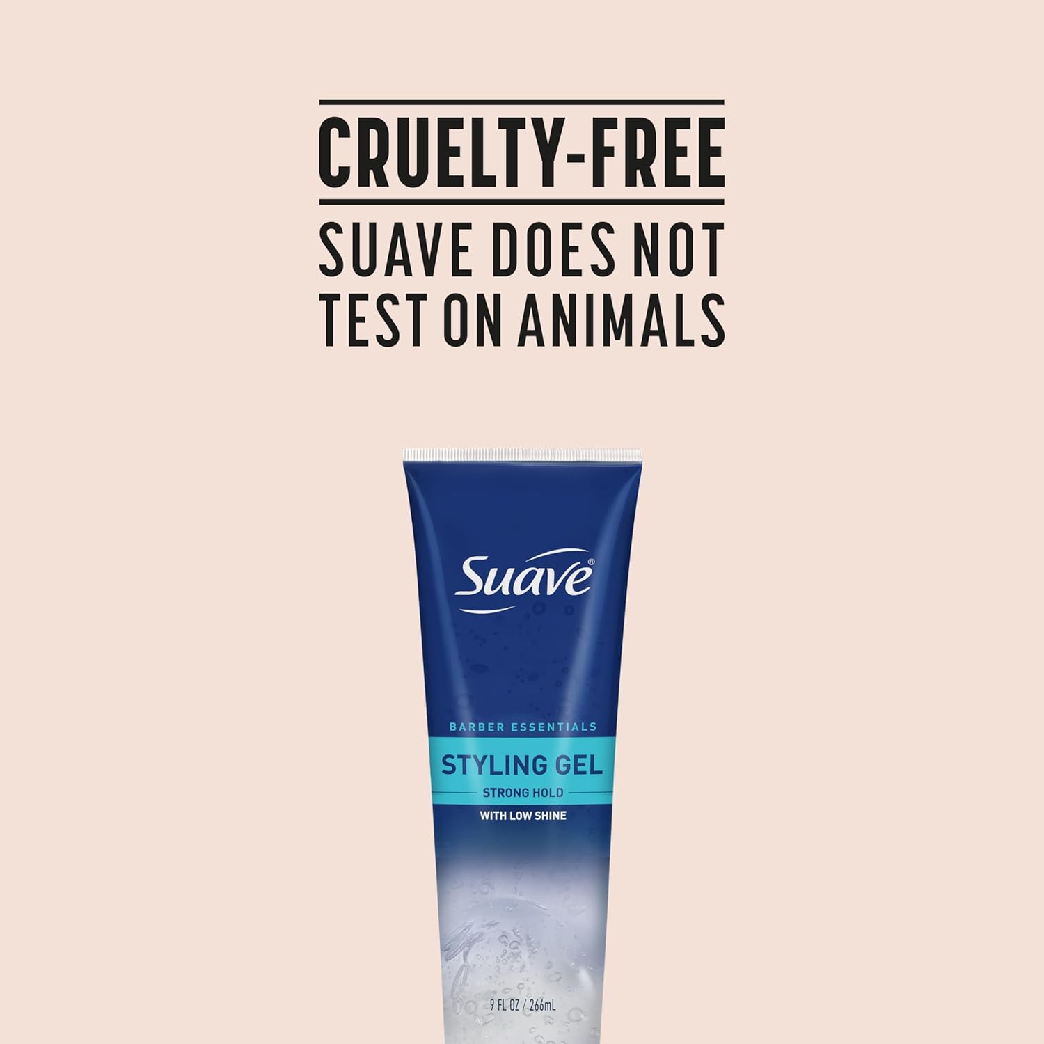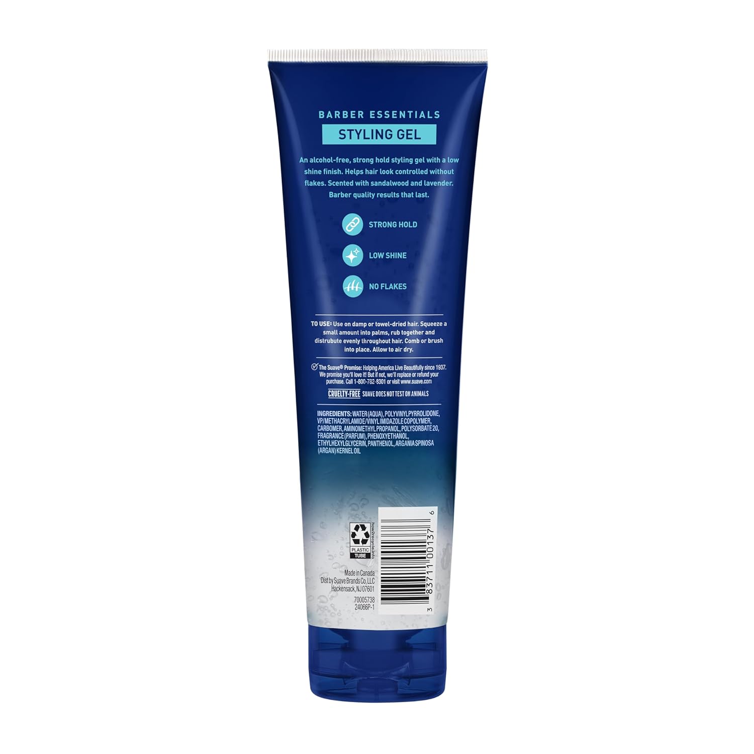 Suave Hair Gel For Men Barber Essentials Styling, Strong Hold and Low Shine, No Flakes, Barber-Quality Results, 9 oz