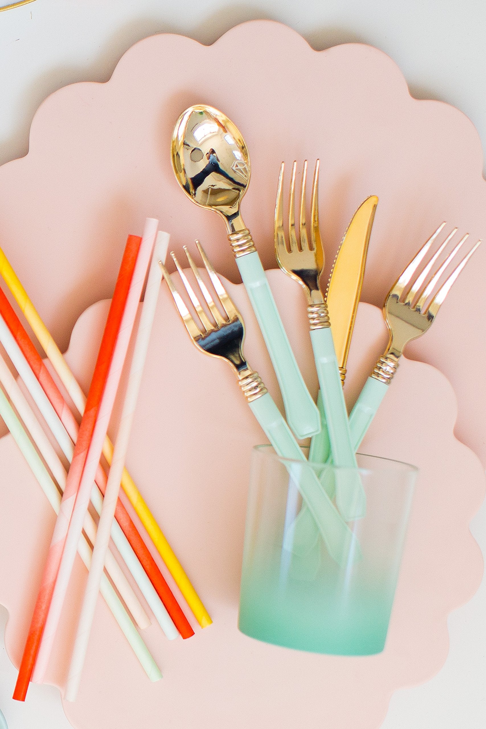 Details: A pretty set of tumblers can take you from brunch to after dinner drinks. Serve anything from bloody mary's to margaritas in these pretty pastel ombre tumblers. From party plates to serveware & champagne coupes, Sugar & Cloth is the perfect way to dress up your table (and avoid the dishwasher)!